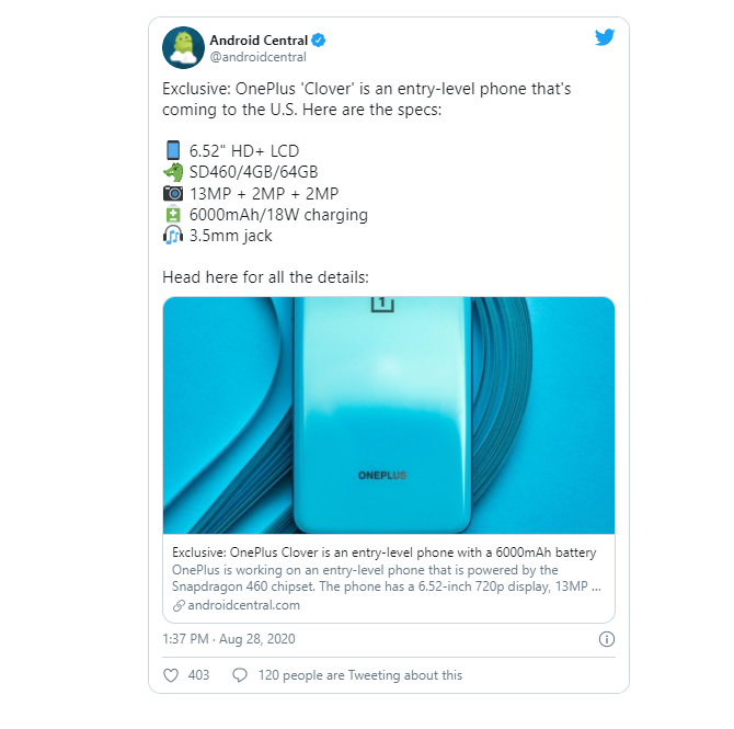 Android Central এর রিপোর্ট অনুযায়ী ২০০ ডলারে OnePlus Clover নামক ফোন নিয়ে কাজ করছে OnePlus। যার ডিজাইন বা ফিচার দেখে মনে হয় এই দামের দুর্দান্ত একটি ফোন হতে চলেছে এটি। যিনি এর আগে OnePlus Nord এর তথ্য লিক করেছিল তিনিই নতুন এই তথ্য গুলো দেন।