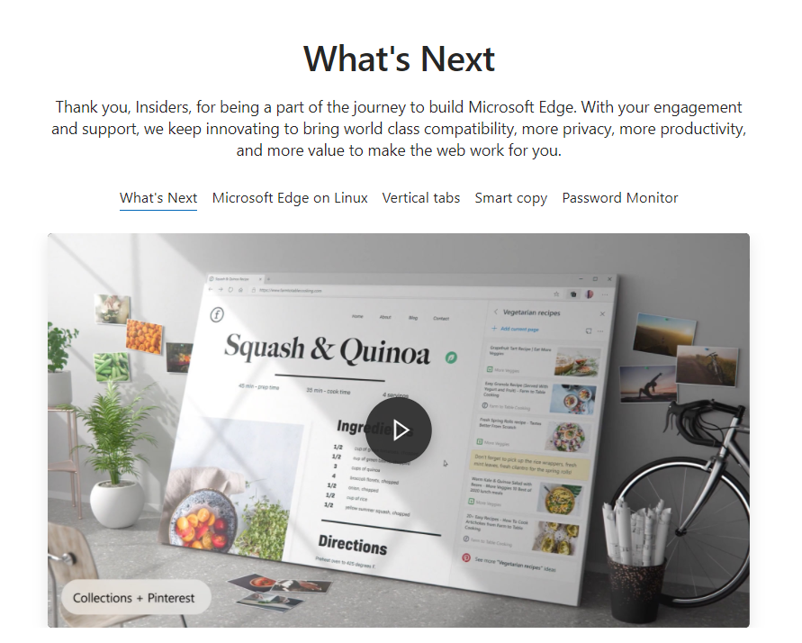 Microsoft Edge এর নতুন রোডম্যাপটি "What's Next" শিরোনামে Microsoft Edge Insider এর ওয়েবসাইটে পাওয়া যাবে। আপনি যদি আগে মাইক্রোসফটের রোডম্যাপ সম্পর্কে পরিচিত থাকেন তাহলে এটি আপনার জন্য নতুন কিছু নয়।
