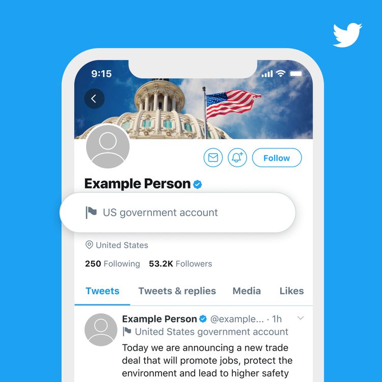 জানা গেছে টুইটার শীগ্রই সরকারী কর্মকর্তাদের ব্যক্তিগত অ্যাকাউন্টে লেবেল স্থাপন শুরু করবে। লেবেলগুলির মাধ্যমে ইউজাররা চিনতে পারবে কোন একাউন্ট গুলো সরকারের সাথে যুক্ত।