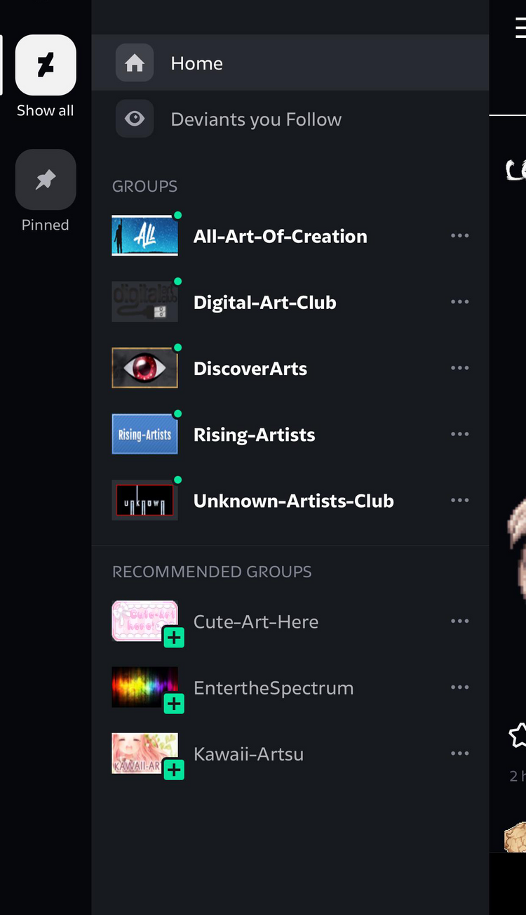 ইউজাররা, DeviantArt এর মোবাইল ভার্সনের মাধ্যমে My Groups এ ক্লিক করে তাদের গ্রুপ গুলোতে প্রবেশ করতে পারবে। একই সাথে Recommended Groups আপনাকে কিছু গ্রুপ সাজেস্ট করবে। সাইটবারে আপনি গুরুত্বপূর্ণ গ্রুপ গুলো পিন করেও রাখতে পারেন।
