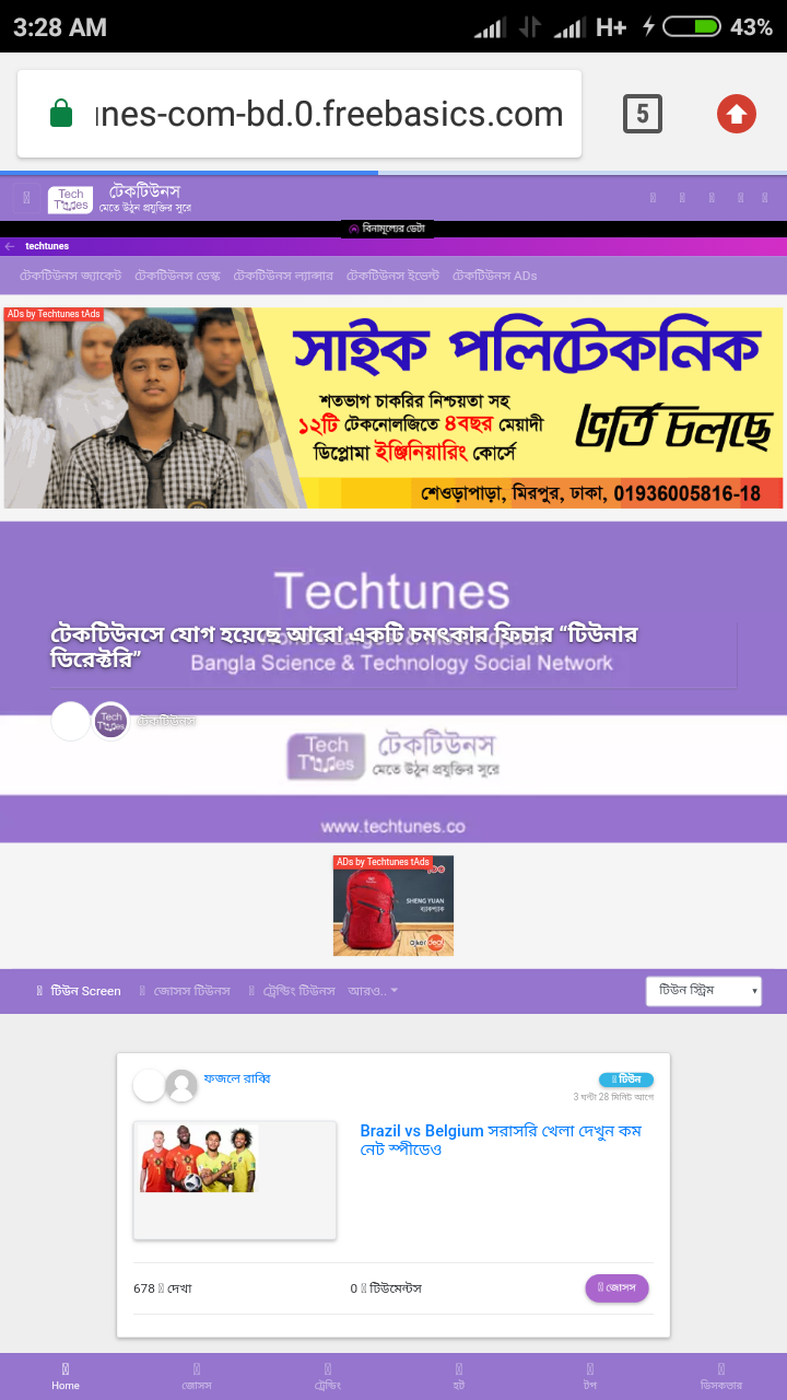 আমাদের সবার জনপ্রিয় বাংলা ভাষার এই জনপ্রিয় টেক সাইটটি এখন থেকে একদম ফ্রিতে ভিজিট করতে পারবেন। কোনো প্রকার এমবি বা টাকা খরচ ছাড়াই। অবাক হচ্ছেন? না অবাক হওয়ার কিচ্ছু নেই। মোবাইলে যদি ইন্টারনেট ব্যালেন্স (এমবি) বা টাকা না থাকে। তাহলে সত্যি সত্যি এখন থেকে এই সাইটটিতে একদম ফ্রিতে ভিজিট করতে পারবেন। সাইটটিতে ফ্রিতে ভিজিট করতে হলে আপনাকে ফ্রিব্যাসিক্সের সাহায্য নিতে হবে। আমার মনে হয় আমরা সকলেই মোটামুটি ফ্রিব্যাসিক্স সম্পর্কে জানি। তাই এই বিষয় নিয়ে আর কথা বাড়ালাম না। আসলে "টেকটিউনস" সাইটটি ফ্রিব্যাসিক্সে অনেক আগেই যুক্ত করা হয়েছে। কিন্তু সাইটটিতে এতোদিন জাভাস্ক্রিপ্ট ব্যবহার করার কারণে ফ্রিব্যাসিক্স দিয়ে ব্যবহার করা যেত না। যেখানে অন্যান্য অনেক সাইট ভিজিট করা যেত।