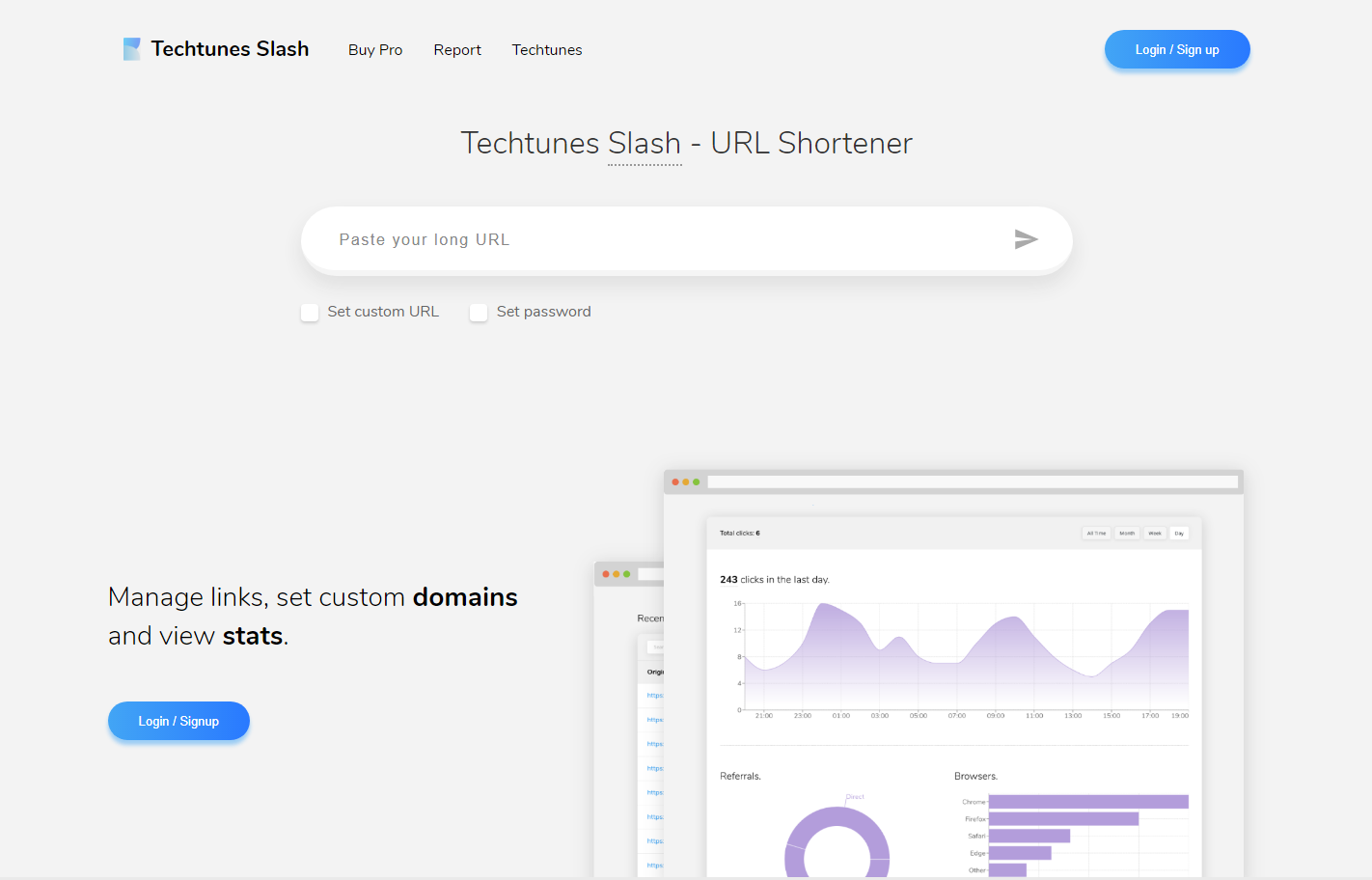 Techtunes Slash এ আপনি কতগুলো Short URL তৈরি করবেন তার কোন লিমিট নেই। আপনি আনলিমিটেড Short URL তৈরি করতে, Track করতে পারবেন অনায়েসে।