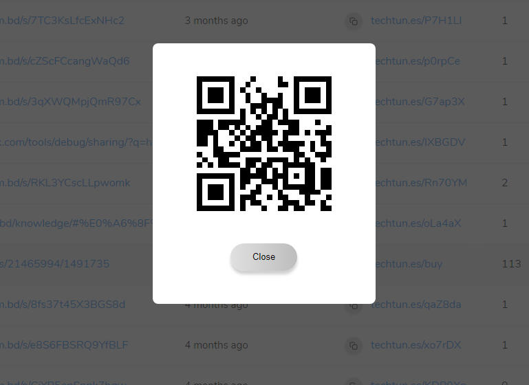 Techtunes Slash এ প্রতিটি লিংকের সাথে প্রয়োজনীয় QR Code স্বয়ক্রিয় তৈরি হয়ে যায়। যার মাধ্যমে আপনি আপনার Short Link মোবাইল/স্মার্টফোন/ট্যাবের জন্যও শেয়ার করতে পারবেন।