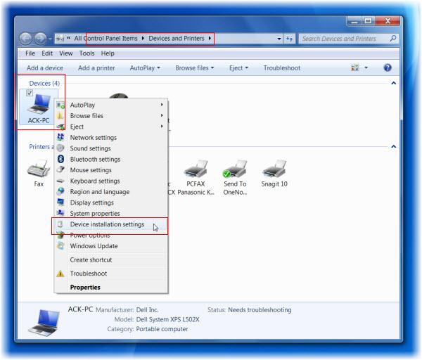 এবার Devices উপরে রাইট বাটন ক্লিক করে Device installation settings নির্বাচন করুন।