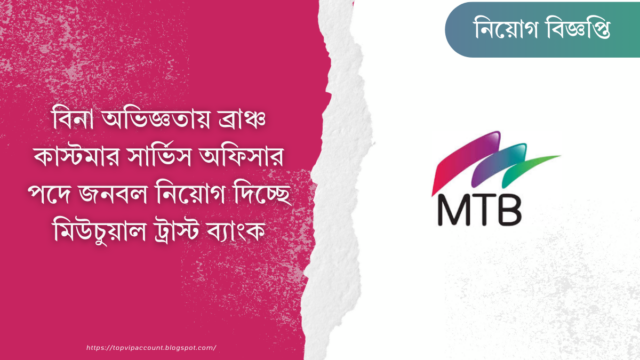 ব্যাংকে চাকরি করতে চান? তাহলে এই চাকরিটা আপনার জন্য ভালো হতে পারে। Mutual Trust Bank এখন নতুন লোক নিচ্ছে Customer Service Officer পদে।