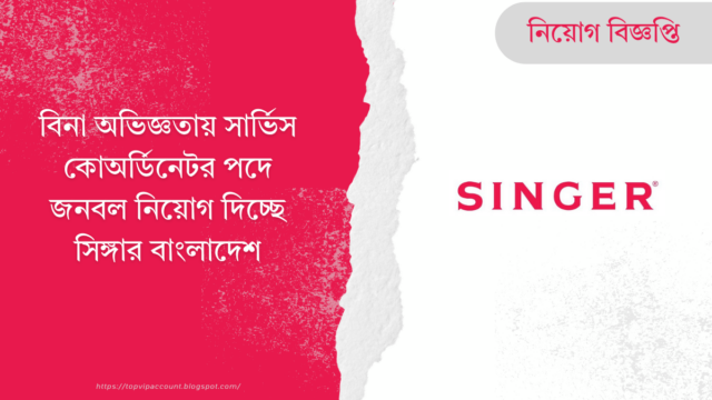 সিঙ্গার বাংলাদেশ লিমিটেডে Service Coordinator পদে চাকরির সুযোগ আছে। দেশের যেকোনো জায়গায় কাজ করা যাবে। বেতন ভালো, সাথে আরও কিছু সুবিধা আছে। যদি customer service আর একটু technical কাজ জানেন, তাহলে আপনার জন্য এটা ভালো সুযোগ। আবেদন শেষ ১৯ মে ২০২৬।