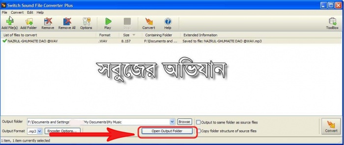 এখন open output folder এ ক্লিক করলে তোমার কনভার্ট করা ফাইল পেয়ে যাবে।