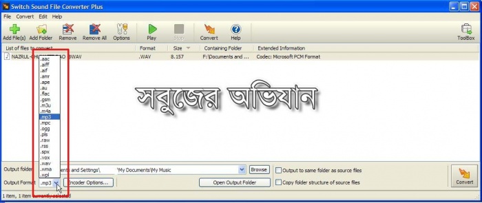 এবার তুমি যে অডিও কনভার্ট করতে চাও সেটা সিলেক্ট কর নিচের মতো।
