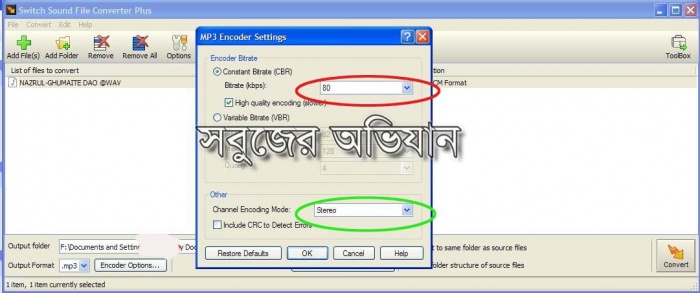 চতুর্থত - তোমার মোবাইলের মেমরি যদি কম হয় , তবে তুমি এই Switch এর সাহায্যে Bitrate কমিয়ে audio file এর সাইজ ছোটো করে নিতে পারবে। কারণ এই software টি Mp3 থেকে Mp3-ও কনভার্ট করতে পারে।