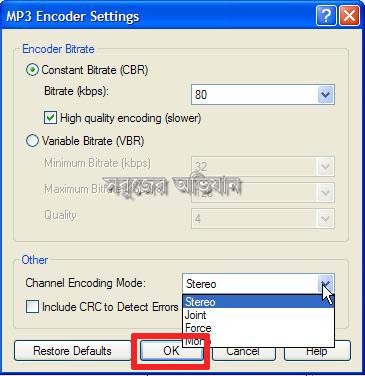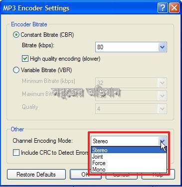 এবার Encoder Option এ যাও। এখানে তুমি দুটি option পাবে- Constant Bitrate (CBR) এবং Channel Encoding Mode.