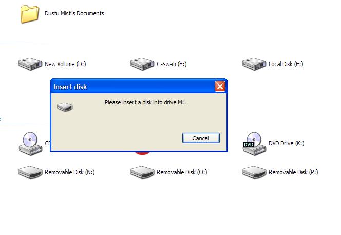 নিচে গিয়ে খাওয়াদাওয়া সেরে উপরে এলাম। হঠাৎ মনে পড়ল আমার সেই কলিগ টেরাকপি সফটওয়্যারও চেয়েছিলো। সুতরাং আবার usb পোর্টে পেনড্রাইভ ঢুকালাম।কি ব্যাপার ! আমার পেন ড্রাইভ অটো-ওপেন হয়।কিন্তু কোন option এল না কেন ? যাহোক কোনো একটা কিছু হয়েছে বোধ হয়। যাকগে My Computer থেকেই ঢুকি। আমার পেনড্রাইভের আইকনে ডাবল ক্লিক করলাম। ও মা এ কী মেসেজ দিচ্ছে ? ‘Please insert a disk into Drive M’ ।