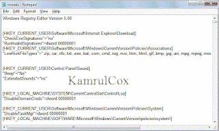 মনে রাখবেন-Windows Registry Editor Version 5.00 লাইনটা শুধু একবারই থাকবে এবং তা হবে সবার উপরে। এর নিচের দুটো লাইন বাদে পরের লাইনে আপনার সেটিংসগুলো এড করে নেবেন।