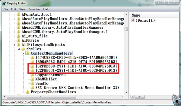 [HKEY_CLASSES_ROOT\AllFilesystemObjects\shellex\ContextMenuHandlers\{C2FBB630-2971-11D1-A18C-00C04FD75D13}]