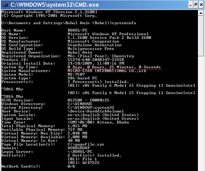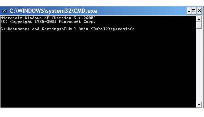 ৩) এবার আপনার সামনে যে উইন্ডো চালু হবে তাতে systeminfo লিখে এন্টার চাপুন ।