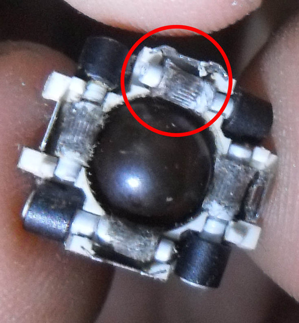 আঙ্গুল দিয়ে ধরে ক্লোজ আপ মোডে তুলেছি এই ছবি । দেখেছেন ময়লার অবস্থা ?? এরকম থাকলে ট্র্যাক বল কীভাবে রেসপন্স করবে ?? এবার আঙ্গুলের নখ দিয়ে ময়লা গুলো পরিষ্কার করুন । এক্ষেত্রে সুচ, কম্পাসের মাথা অথবা চোখা যে কোন কিছু দিয়ে পরিষ্কার করতে পারেন । পরিষ্কার করার পর নিচের ছবিটি দেখুনঃ