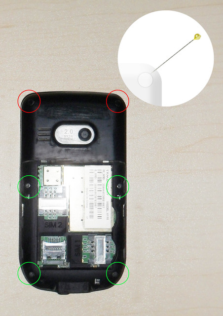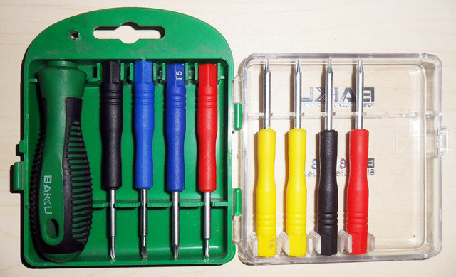 লক্ষ্য করুন, ৬টি স্ক্রু আছে । সবুজ চিহ্নিত স্ক্রু গুলো আপনি ব্যাক কভার খুললেই দেখতে পারবেন । আর লাল চিহ্নিত অংশ দুটির উপর রাবারের একটি ছোট আস্তরন থাকে । ইলাস্ট্রেট করার ছবি অনুযায়ী একটি সুই দিয়ে সাইড থেকে চারা দিয়ে আপনি এটি তুলে নিতে পারবেন । এই ছয়টি স্ক্রুর উপর যে কোন একটিতে স্ক্রুর উপরে সাদা কাগজ/রং থাকবে । এটা দ্বারা কাস্টোমার কেয়ার নিশ্চিত হয় যে আপনি নিজে/বাইরের দোকান থেকে খুলিয়েছিলেন কিনা । আপনি যদি স্ক্রু ড্রাইভারটি স্ক্রুর মাথায় বসান তাহলে সম্ভবত আপনার ওয়ারেন্টি নষ্ট হবে । যাই হোক, স্ক্রুর মাথা আর BK-600A এর পিছে দেয়া ড্রাইভারের ম্যানুয়াল অনুযায়ী বুঝলাম যে নিচের চিত্রের দুটির মাথা একই রকম !