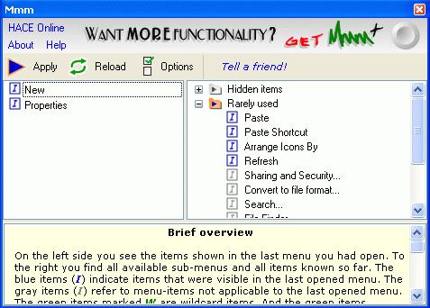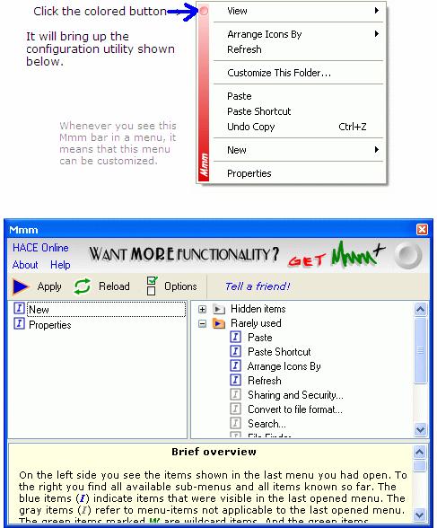 কোন ফাইল, ফোল্ডার বা ড্রাইভের উপর মাউসের ডান বাটন ক্লীক করলে একটি মেন প্রদর্শিত হয় । এটাকে কনটেক্স মেনু বলে । এই কনটেক্স মেনুকে আপনি ইচ্ছে করলে কাস্টমাইজ করতে পারেন । আর এ জন্য প্রয়োজন একটি সফটওয়্যার যার নাম এমএমএম সফটওয়্যার । এর সাইজ মাত্র ৮৫৭ কিলোবাইট এবং ইহা সম্পূর্ণ ফ্রী । সফটওয়্যারটি ডাউনলোড করে ইনস্টল করলে আপনার কনটেক্স মেনুর বাম পাশে এটি দেখতে পাবেন । এটির Colored বাটনে ক্লীক করলে সফটওয়্যারটি ওপেন হবে ।