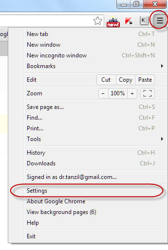 গুগল ক্রোমের রেঞ্জ মেনুতে ক্লিক করে Settings এ ক্লিক করুন।
