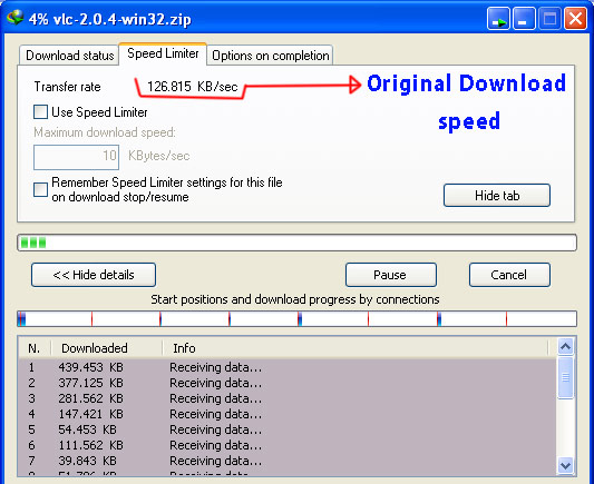 তারপর নিচের ছবিতে লক্ষ করুন। দেখুন আমার orginal download speed দেখা যাচ্ছে এবং এটা 128KBps.