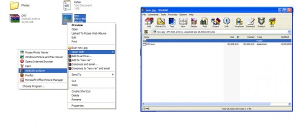 :arrow: এ জন্য আপনার লাগবে: ১। যেকোনো একটি কমপ্রেস সফটওয়্যার (WinRar, WinZip, 7zip, Freeace etc.) ২ । আপনি যেই ফাইলটি লুকাতে চান সেটি এবং ৩। যেই ধরণের ফাইলের ভিতর আপনি ফাইলটি লুকাবেন সেটি। উমম আপনি যদি ছবির ভিতর ফাইলটি লুকাতে চান তাহলে যেকোনো একটি ছবির ফাইল / ভিডিও ফাইল ইত্যাদি নিবেন। আসুন ফাইল লুকানো যাক! : :P স্টেপস: **ধরুণ আপনি photo.jpg ছবির ভিতর O97.exe ফাইলটি লুকাবেন।** ১। প্রথমে আপনার গোপনীয় ফাইল (যেটি লুকাবেন) এবং একটি পিকচার ফাইল আপনার পিসির যেকোনো ড্রাইভে রাখুন। আমি এফ ড্রাইভে রেখেছি। ২। গোপনীয় ফাইলটিকে সিলেক্ট করে এড টু আর্কাইভ (আমার কাছে উইনরার সফটওয়্যার। তাই কমপ্রেস এরজন্য এই সিস্টেম) বাটনে ক্লিক করুন। ৩। উইনরার প্রোগ্রামটি ওপেন হবে। এরপর ওকে বাটনে ক্লিক করে ফাইলটি কমপ্রেস করুন।