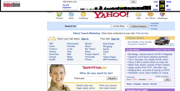 যেমন আমি yahoo ২০০৬ সালের ২৮ এ ফেব্রুয়ারীতে কেমন ছিল তা দেখতে পাচ্ছি