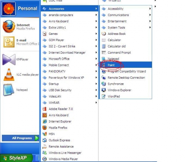 ৩।তার পর আপনি সরা সরি চলে যাবেন *start* মেনুতে ওখান থেকে All Programs এ গিয়ে *paint* আপশনে click করবেন তার পর একটা নতুন window আসবে।