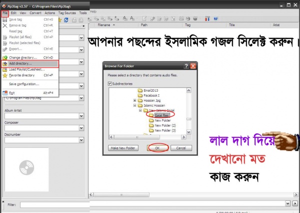 এবার যে গজলে ছবি দিবেন গজল গুলো ওপেন করুন ওপেন করতে File>Add Directory> করে আপনার গজল দেখিয়ে দিন।