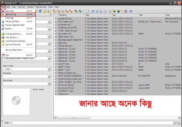 সবশেষে File >> Save Tag এ ক্লীক করুন। অথবা নিচের দেখানো মত ক্লিক করুন। ব্যাস কাজ শেষ এবার গজলটি চালু করে দেখুন মজা।