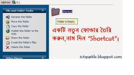 ১/প্রথমে আপনি আপনার যেকোনো একটি হার্ডডিস্ক ড্রাইভ এ ফোল্ডার তৈরি করুন। তার নাম দিন "Shortcut"।স্ক্রিন শট দেখুন।