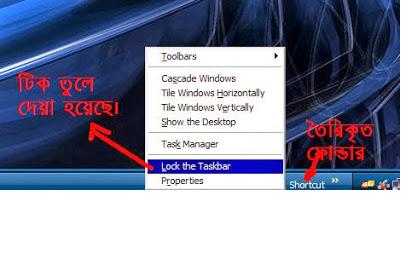 এবার টাস্কবারের ফাঁকা জায়গায় রাইট ক্লিক করে "Lock the Taskbar" এ টিক দিয়ে দিন।আপনি চাইলে টুলবারে "Always On Top" এ টিক দিতে পারেন।