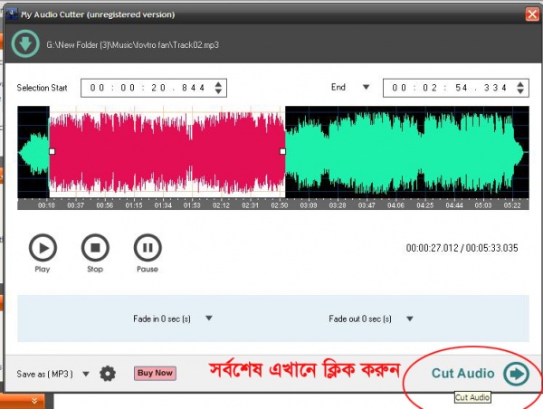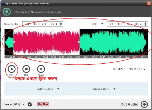 এবার সেভ করা ফাইল প্লে করে দেখুন আপনার পছন্দ অনুযায়ী ফাইল কাটা হয়ে গেছে।