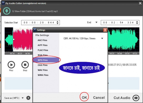 তারপর সবশেষ Audio Cut বাটনে ক্লিক করুণ তাহলে Save ডায়ালগ বক্স আসবে যে কোণ একটি নাম দিয়ে Save করুণ। তারপর সেভ হতে কিছু সময় নিবে।