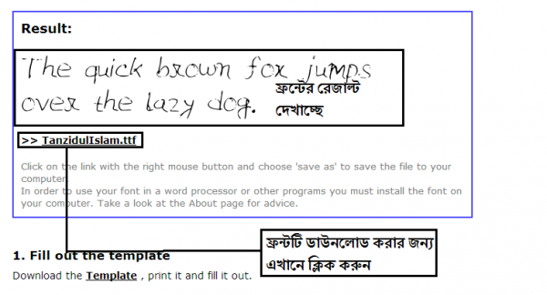 >>> এবার আপনার তৈরী করা ফন্টটি ডাউনলোড করার জন্য স্ক্রিনশটের মত আপনার দেওয়া ফ্রন্টের নামের উপর ক্লিক করুন