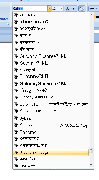 >>> ফন্টটা চেক করার জন্য MS Word ওপেন করে ফ্রন্টের নামের প্রথম অক্ষরের অনুসারে আপনার ফন্টটি খুজে বের করুন