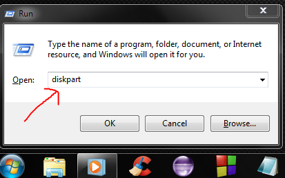 প্রথম ধাপঃ প্রথমে স্টার্ট বাটনে ক্লিক করেন তারপর রান (Start+r) তারপর টাইপ করুন “diskpart” দেন এন্টার (কোন কোটেশন থাকবে না)