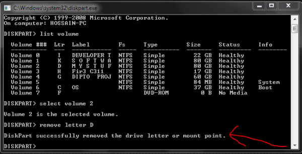 শেষ ধাপঃ এবার টাইপ করুন “assign letter D” (কোন কোটেশন থাকবে না) কাজ শেষ আমাদের এবার মাই কম্পিউটার এ গিয়া দেখুন ড্রাইভ চলে আসছে 😀