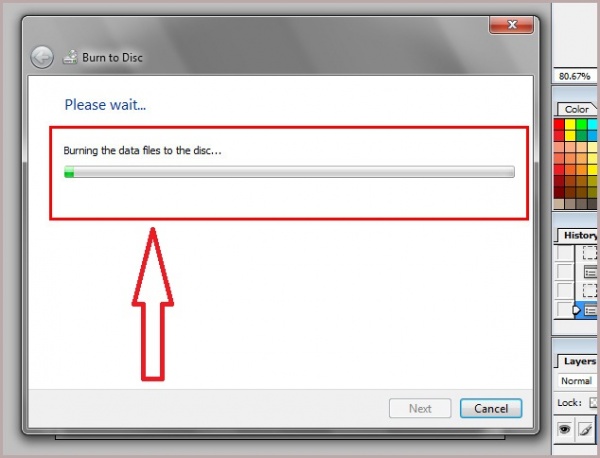 Next এ ক্লিক করার পরেই নিচের মত একটি পিক্সার আসবে, যদি আসে তাহলে বুঝবেন আপনার সিডি রাইট শুরু হয়ে গেছে