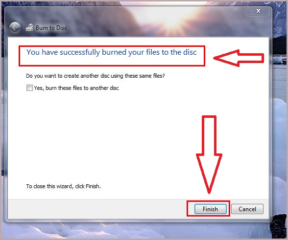 এবার অপেক্ষা করুন, সিডি/ডিভিডি রাইট শেষ হতে দিন। কাজ শেষ হলে নিচের মত একটি সাকসেস মেসেজ দিবে, যদি এই রকম আসে তাহলে বুঝবেন রাইট শেষ এবং সম্পন্য হয়েছে। এবার ফিনিস দিয়ে দিন।