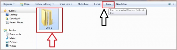 এবার আপনি যে ফাইল গুলো সিডিতে রাইট করবেন সেই ফাইল গুলো কপি/পেষ্ট করে একটি ফোল্ডারে নিয়ে আসুন, বা আপনি চাইলে আলাদা আলাদাও রাখতে পারেন সেখানে থেকে এ্যড করে দিবেন। কিন্তু একটি ফোল্ডারে এনে রাখলে কাজ করতে সুবিধা হয়। তাই একটি ফোল্ডারে নিয়ে আসুন, এবার যে ফো্ল্ডার টিতে সকল ফাইল রেখেছেন সেই ফোল্ডারকে সিলেক্ট করে উপরে Burn এ ক্লিক করুন। নিচের স্ক্রীটশর্টটি দেখুন বুঝতে সুবিধা হবে।