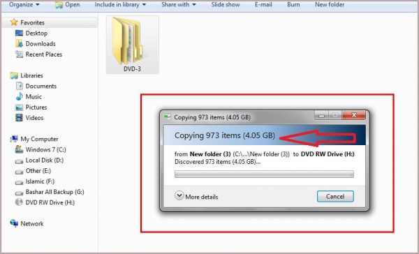 প্রথমে আপনার সিডি/ডিভিডি পিসিতে প্রবেশ করান এবং মাই কম্পিউটারে গিয়ে দেখুন সিডি পেয়েছে কিনা। পেলে এই রকম দেখাবে। নিচ থেকে দেখে নিন আপনার সিডি/ডিভিডির সাইজ কত? আপনার ডাটা যেন তার থেকে বেশি না হয়ে যায় সে দিকে খেয়াল রাখবেন, এবং এটিও খেয়াল রাখবেন সিডি/ডিভিডির সাইট যতটুকু আপনার ডাটার পরিমান তার থেকে অন্তত্য ১৫০ থেকে ২০০ মেগাবাইট কম রাখুন। তাহলে সিডি নষ্ট হওয়ার সম্ভবনা কম থাকে।