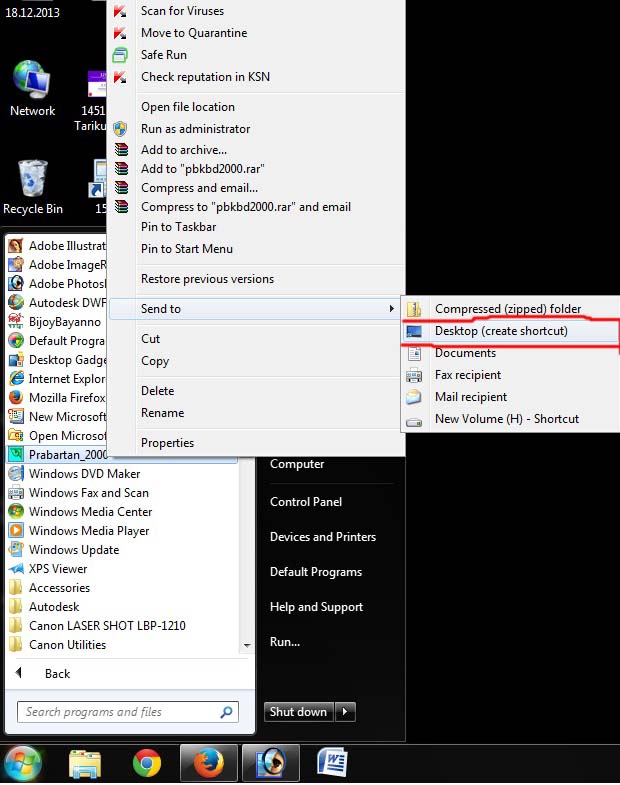 এখন বলি শর্টকাটতো জানবেনই , কিন্তু যদি হয় ঐ শর্টকাট নিজের মত করে তৈরী করা তাহলে কেমন হয়?? হ্যাঁ আজকে ঐ জিনিষটাই দেখাবো কিভাবে নিজেই নিজের এপলিকেশনের বা ফোল্ডারের শর্টকাট তৈরী করবেন। তার আগে বলে রাখি আপনি যে এ্যাপলিকেশন বা ফোল্ডারের শর্টকাট তৈরী করবেন অবশ্যই তার ডেস্কটপ শর্টকাট আইকন থাকতে হবে। ডেস্কটপ শর্টকাট আইকনের জন্য কাঙ্খিত এ্যাপ্লিকেশন বা ফোল্ডারের উপর মাউসের রাইট ক্লিক করে send to desktop এ ক্লিক করুন। নিচে দুটো ছবি দেখুন বুঝতে সহজ হবে.......................
