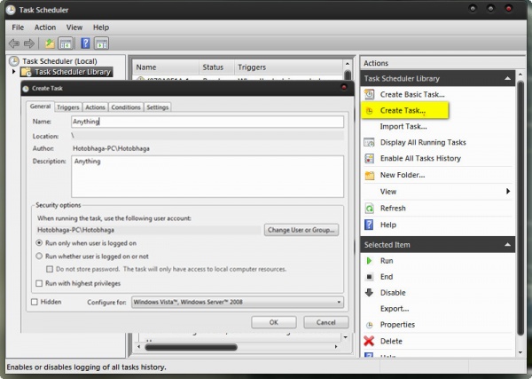 প্রথমে আপনার স্টার্ট বাটনে ক্লিক করে টাইপ করুন Task Scheduler অথবা Start>All Program>Accessories>System Tools>Task Scheduler ওপেন করুন। এবার নিচের স্ক্রীন শট ফলো করুন।