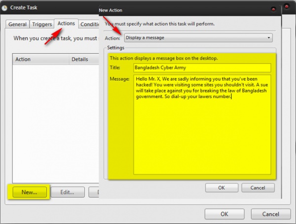 এই সিরিজে আমরা সব মাথা নষ্ট করা পদ্ধতি দেখি যার ধারা আমাদের চালাক বন্ধুদের একটু বোকা বানাই। আজকের পদ্ধতিটা অনেক মজার তবে আপনার বন্ধু যদি এক্সপার্ট হয় তাহলে পারবেন না। আশা করি আপনার ফ্রেন্ড Task Scheduler সম্পর্কে কিছুই জানে। Task Scheduler হল উইন্ডোজের একটি টুল যার ধারা নির্দিষ্ট সময় পর সফটওয়্যার বা ওয়েবপেজ অটো রান করানো যায়। নির্দিষ্ট সময় পর পর মেসেজ দেবে আর উল্টা পাল্টা প্রোগ্রাম রান হবে। আসুন দেখি কিভাবে সেটা করবেন। আমি সপ্তম জানালা দিয়ে করেছি। অন্য জানালা সম্পর্কে জানি না।