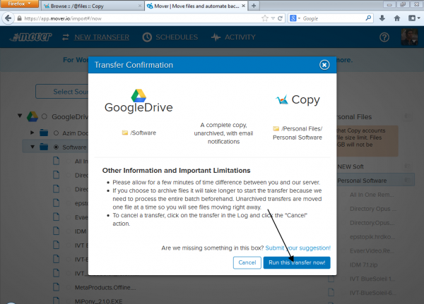 এবার নিম্মেরমত স্ক্রীন আসলে Run this transfer now বাটনে ক্লিক করুন