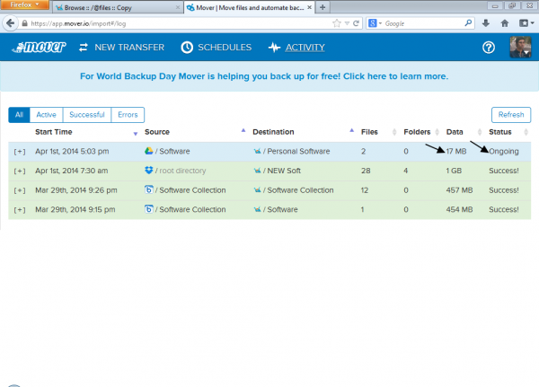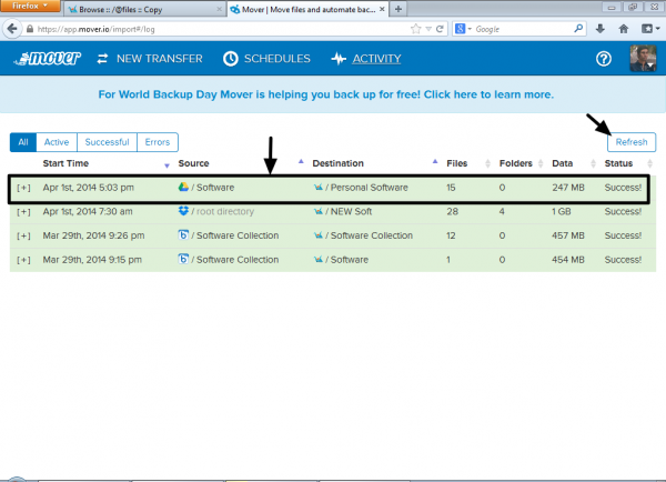 এবার নিম্মেরমত একটা স্ক্রীন পাবেন। এখানে source হল আপনি যেখান থেকে কপি করছেন সে সাইট। status এ দেখাবে আপনার প্রোজেক্ট on going or queued or success অবস্থায় আছে। Refresh এ ক্লিক করলে আপডেট দেখাবে। এছাড়া all, active, successful, errors এ আপনি আপনার প্রোজেক্টের অবস্থা দেখতে পারবেন।