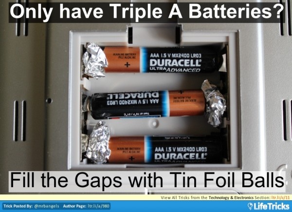 ব্যাটারি সাইজ ঠিক নেই? বাড়তি অংশটি অ্যালমুনিয়াম ফয়েল দিয়ে মুড়িয়ে পূরণ করে দিন। কাজ হয়ে যাবে।