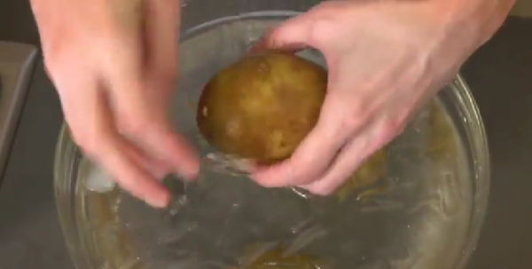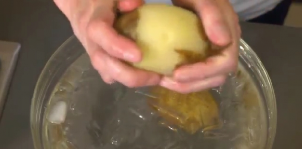 এখন এই সিধ্য করা গরম আলুকে ১০ থেকে ২০ সেকেন্ডের জন্য বরফের পানিতে রাখেন।