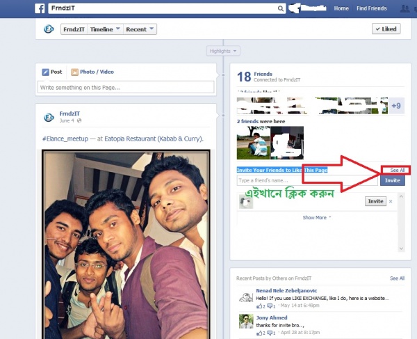 Step 2: এবার নিচের চিত্রের মতো "Invite Your Friends to Like This Page" এর পাশে "See All " এ ক্লিক করুন।