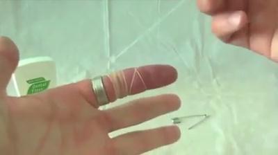 আপনি রিঙ্গের ভিতর দিয়ে একটা সুতা ঢুকান। সেফটি পিন দিয়ে এই কাজটা করতে পারেন। তবে নিজেকে গুতা দিতে যাইয়েন না।