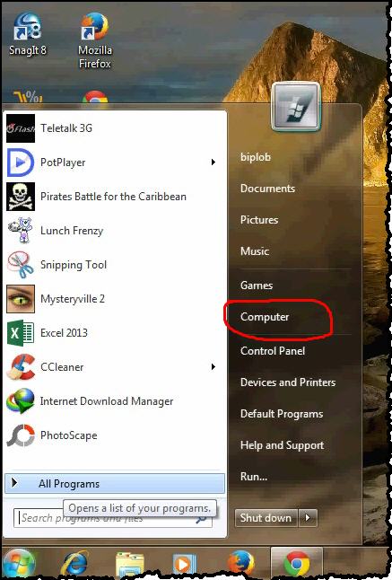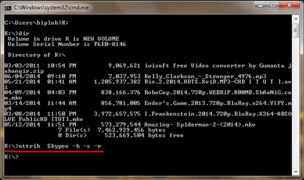 এবার যে ড্রাইভ এ system hidden file আছে সে ড্রাইভ এ জান ( আমার ড্রাইভ এখানে k )